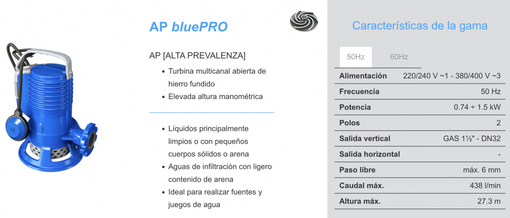 Serie BluePRO de Zenith: bomba sumergible para prestaciones elevadas.
